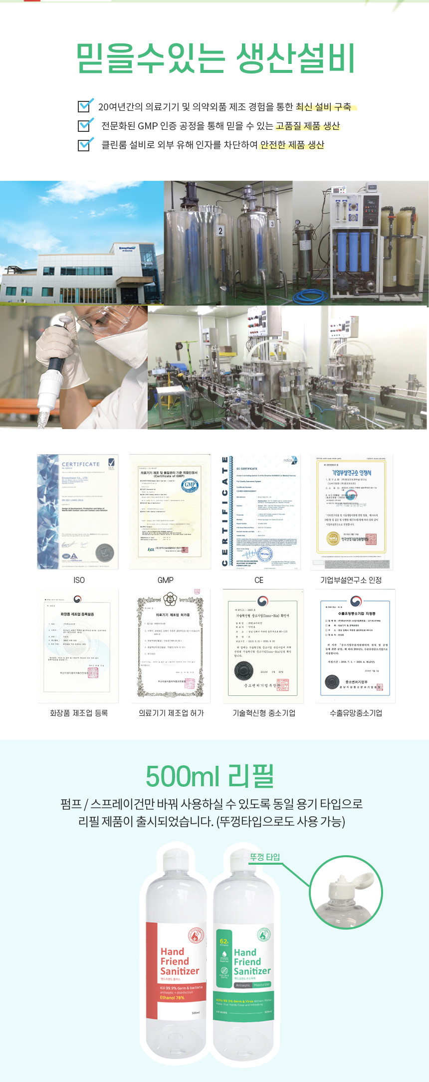 [1+1]핸드프렌드 플러스 스프레이형 소독제 500ml