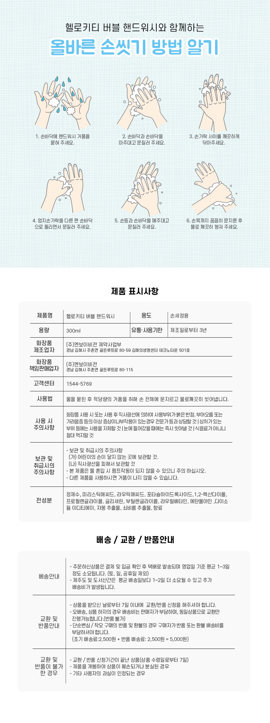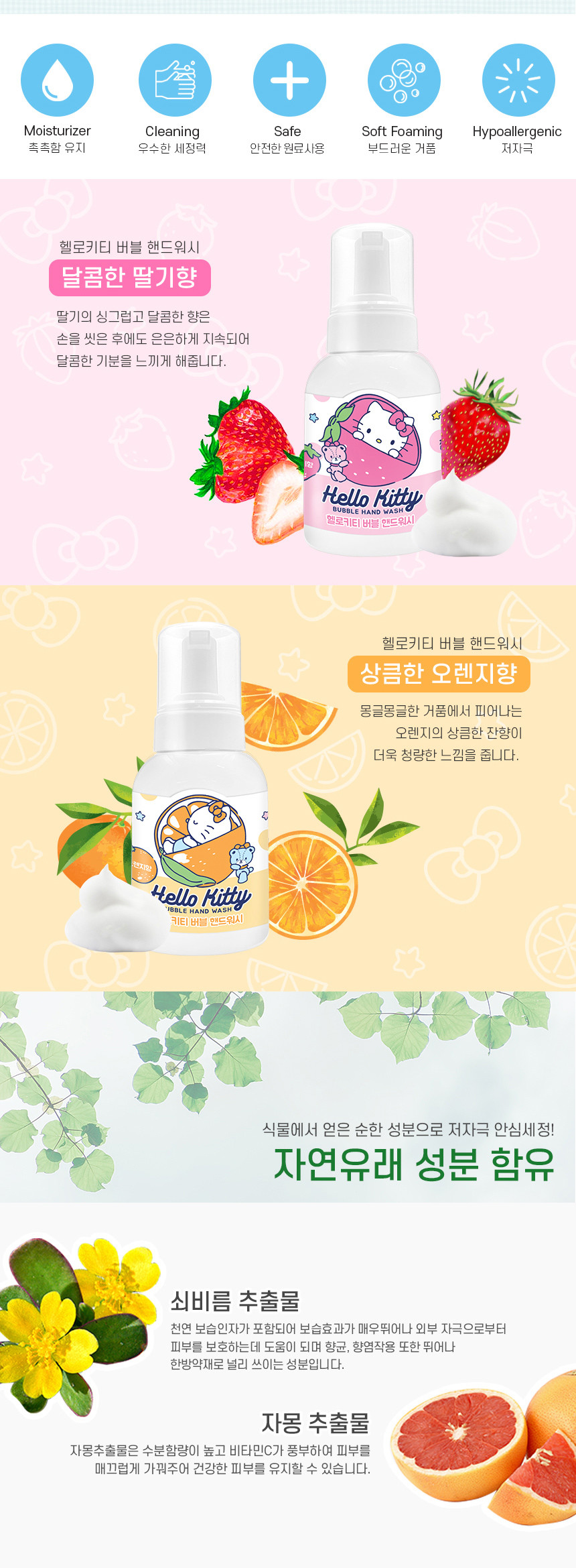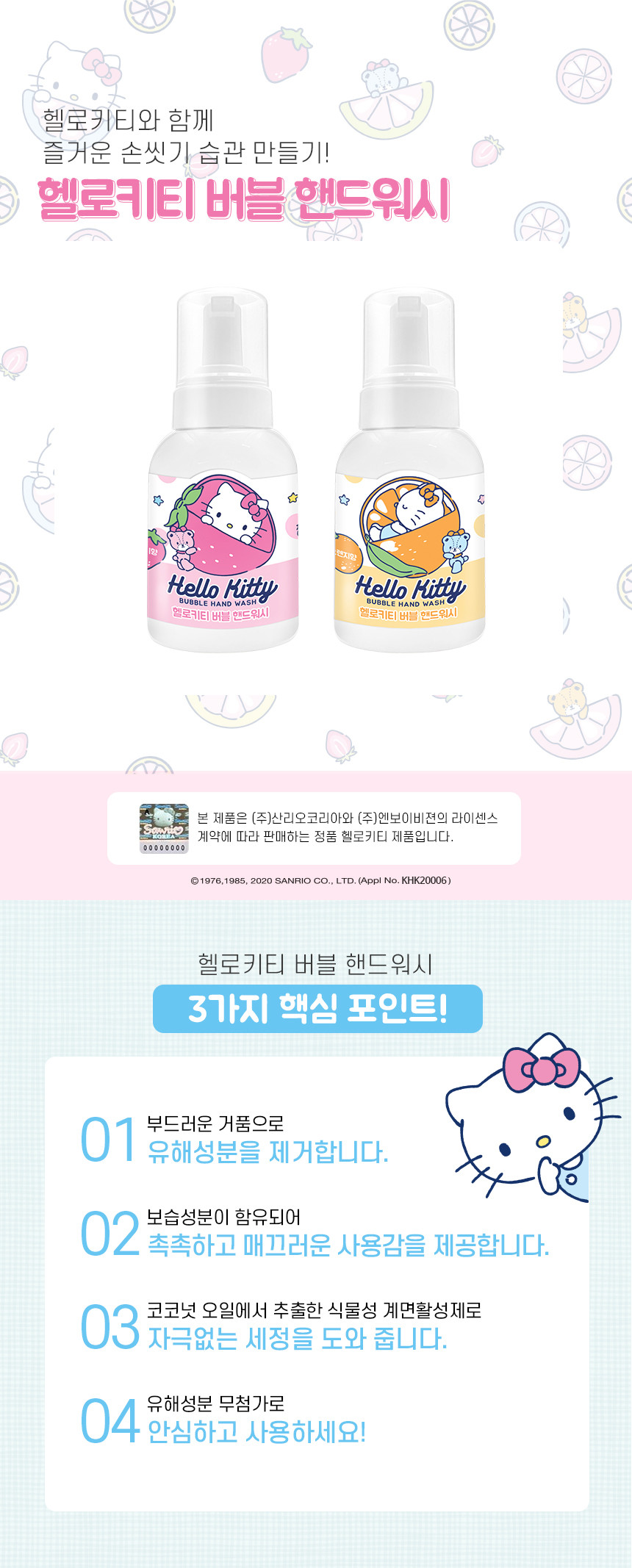 헬로키티 버블 핸드워시 300ml 입니다. 뚜껑 펌프로 되어 있어 안전하게 사용하실 수 있습니다.